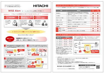 画面サンプルを交えた「WISE Alert」の機能紹介や解決できるメール送受信の課題、価格、導入事例を紹介した資料がダウンロードできます。導入相談も承っております。